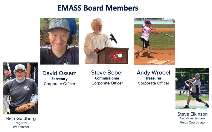 The official address for EMASS is:  EMASS Senior Softball, PO Box 5069, Wayland, Massachusetts 01778-4837